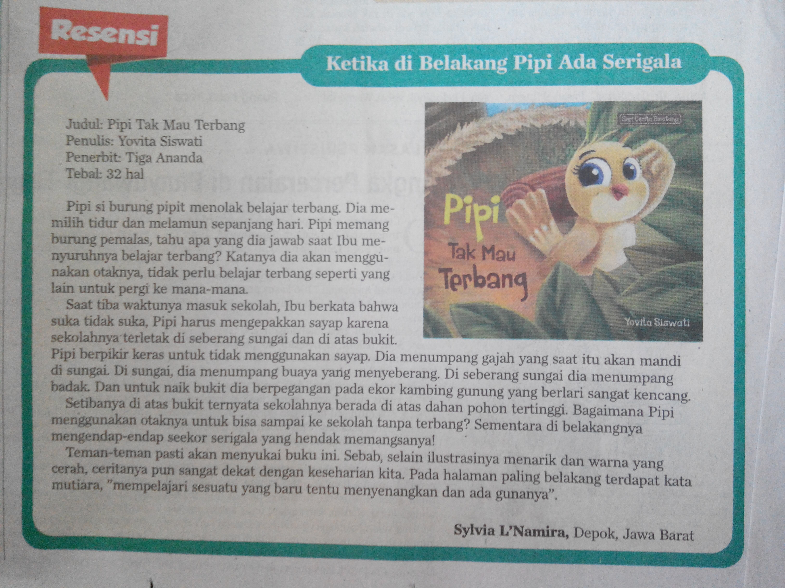 Thanks Mbak Sylvia sudah meresensi buku ini. Thanks juga Kompas anak sudah memuatnya 🙂