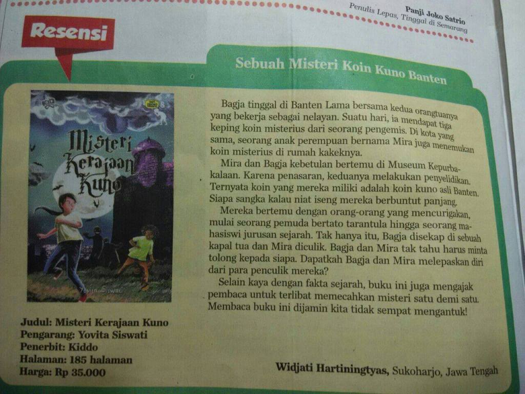 Begitu kata Mbak Tyas dalam resensinya yang dimuat di kolom resensi Kompas Anak edisi Mei 2015. Thanks untuk resensinya. Thanks juga redaksi Kompas yang telah memuatnya.
