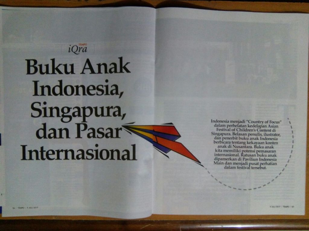 Sebenarnya ada banyak media cetak dan elektronik yang meliput kegiatan Indonesia sebagai Country of Focus dalam AFCC 2017, namun artikel di Tempo ini menurut saya adalah yang paling lengkap. Liputan dimuat di edisi Juli 2017. Screenshotnya bisa dilihat di gambar-gambar di bawah.