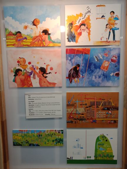 Jadi ceritanya, setiap tahun di forum AFCC di Singapura, akan dipamerkan pula karya beberapa illustrator terpilih dari seluruh Asia. Di bawah ini adalah foto-foto yang saya ambil dari gallery pameran, baik untuk tahun 2018 dan 2019. Khusus yang saya tampilkan di sini adalah ilustrasi karya ilustrator Indonesia saja, karya-karya dari Ilustrator Asia lainnya tidak saya posting karena terlalu banyak. Untuk melihat daftar karya ilustrasi yang dipamerkan di BIG, silakan cek di websitenya AFCC.