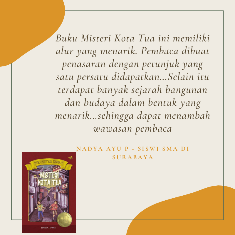 Saya menemukan beberapa unggahan di Youtube yang berisi resensi beberapa novel saya dari beberapa murid sekolah. Resensi novel Misteri Kota Tua di bawah ini adalah salah satunya :