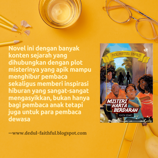 Di atas adalah cuplikan dari resensi Novel Misteri Harta Berdarah di blog dedul-faithful.blogspot.com. Blog tersebut mengkhususkan diri untuk mereview buku berbagai genre. Untuk review lengkapnya silakan klik link ini : Review Misteri Harta Berdarah (Yovita Siswati)