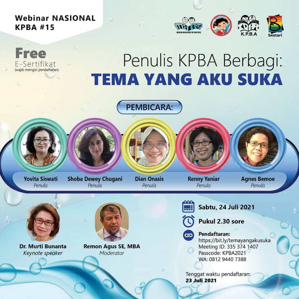 Di bulan Juli, saya bersama para penulis yang menjadi anggota Kelompok Penulis Bacaan Anak yang diketuai Ibu Dr. Murti Bunanta, mendapat kehormatan untuk berbagi cerita mengenai tema-tema apa yang kami sukai sebagai penulis buku anak-anak. Acara itu sangat seru, dan bagi saya juga sangat inspiratif karena selain membagikan cerita saya, saya juga mendapat kesempatan untuk mendengarkan kisah dari para penulis lainnya yang semuanya hebat dan sangat saya hormati. Artikel tentang acara itu bisa dibaca di link ini : Dari Acara Penulis KPBA Berbagi : Tema Yang Aku Suka