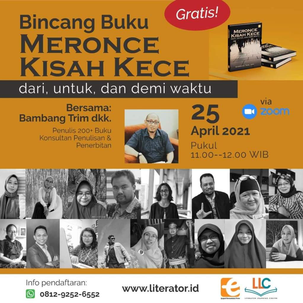 Di awal tahun, terbit buku antologi kisah hidup di mana saya menjadi salah satu kontributornya. Buku yang diberi judul Meronce Kisah Kece ini adalah hasil dari kelas menulis biografi yang diampu oleh Pak Bambang Trim bersama Penerbit Epigraf Komunikata. Cerita lengkap bisa dibaca di sini : Behind the Scene : Meronce Kisah Kece