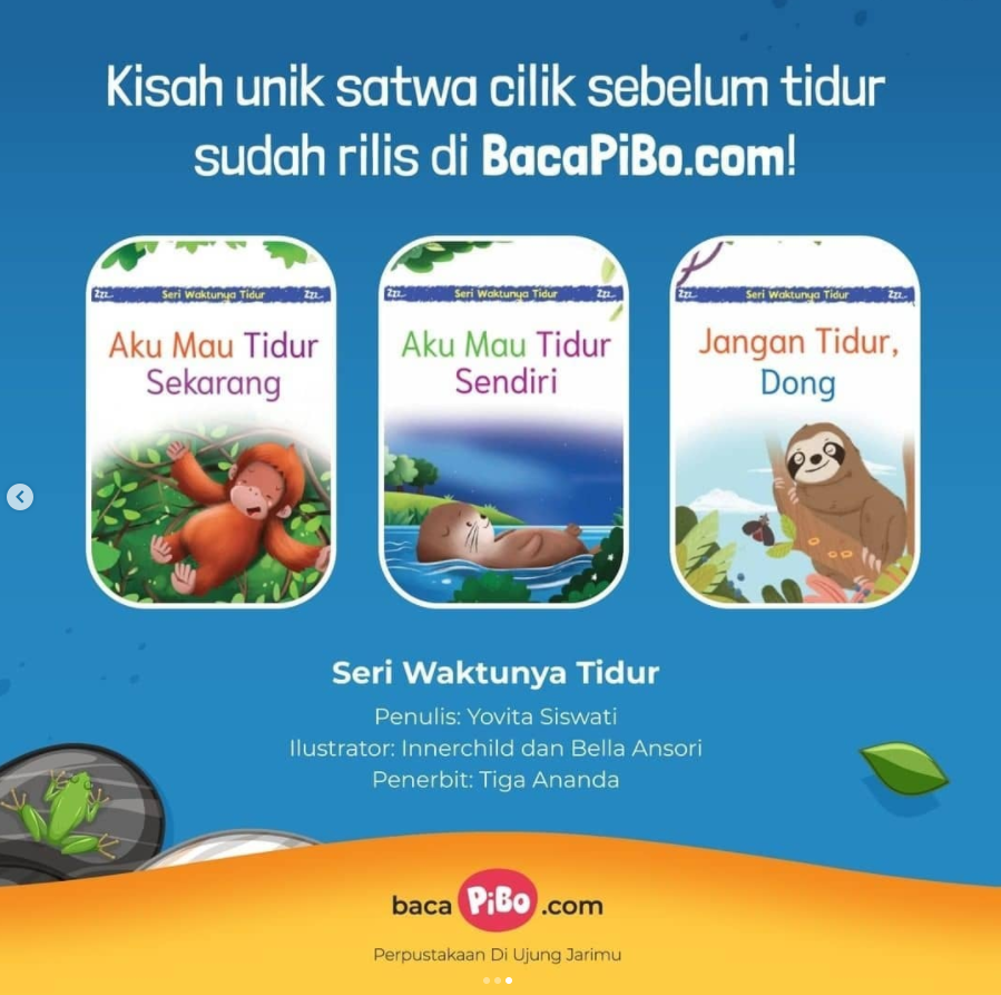 Buku Seri Waktunya Tidur yang diterbitkan oleh Penerbit Tiga Serangkai sekarang bisa dibaca secara digital dengan menjadi anggota portal Bacapibo.com. Jadi silakan mendaftar di sana 🙂